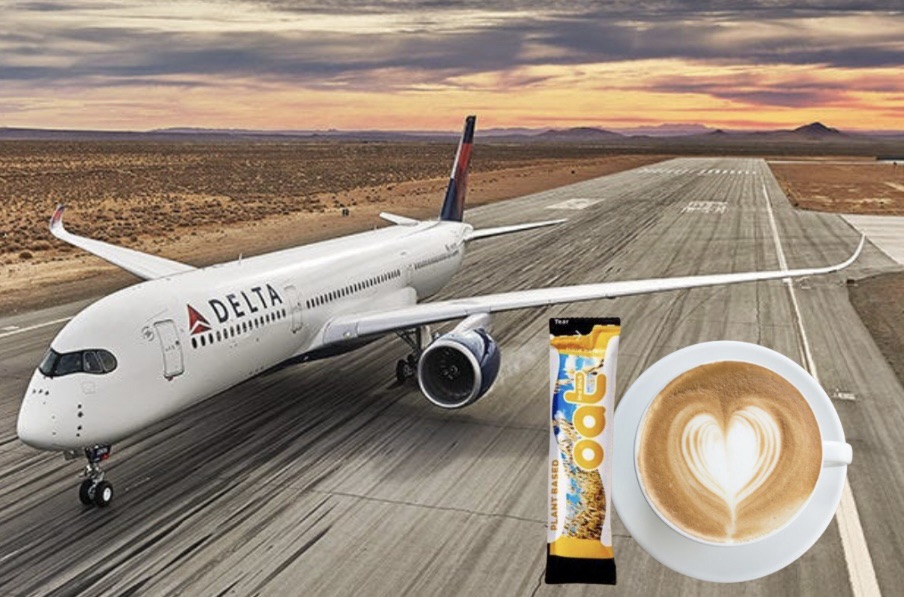 Delta became the first major airline to offer a plant-based coffee creamer. Oat milk creamer is now available on all Delta flights departing from the US.